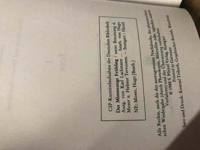 wir trödeln | Des Minnesangs Frühling, Moser